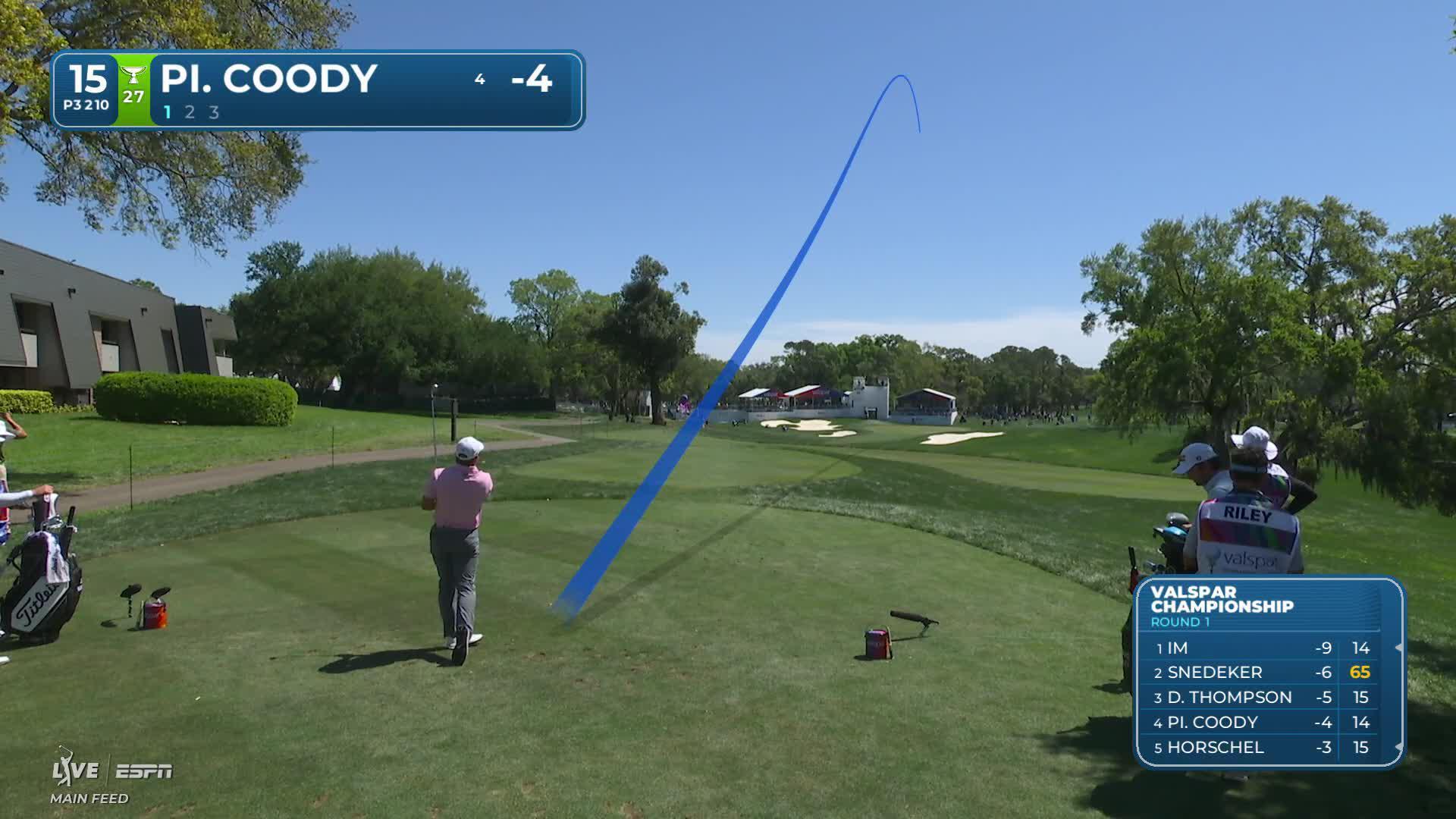 Pierceson Coody hits tee shot to 3 feet on No. 15 at Valspar